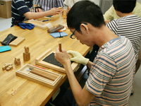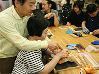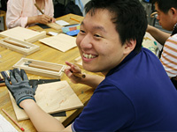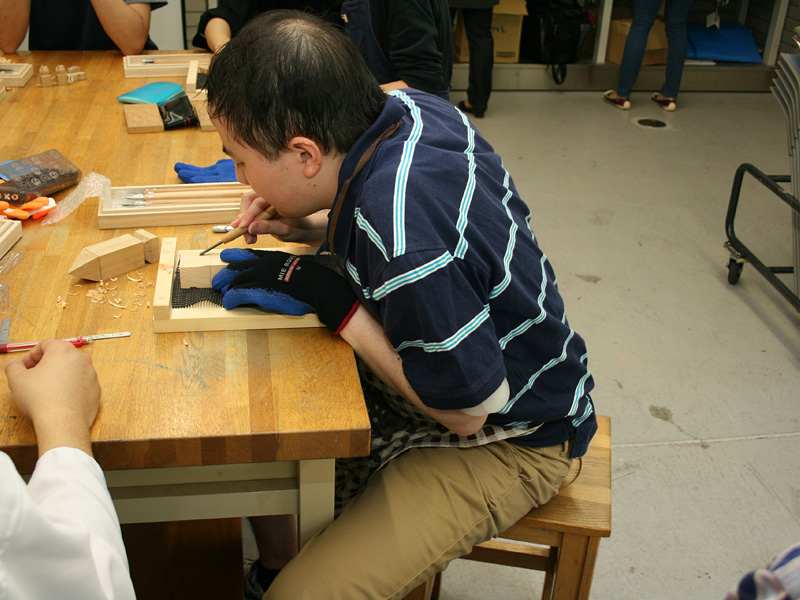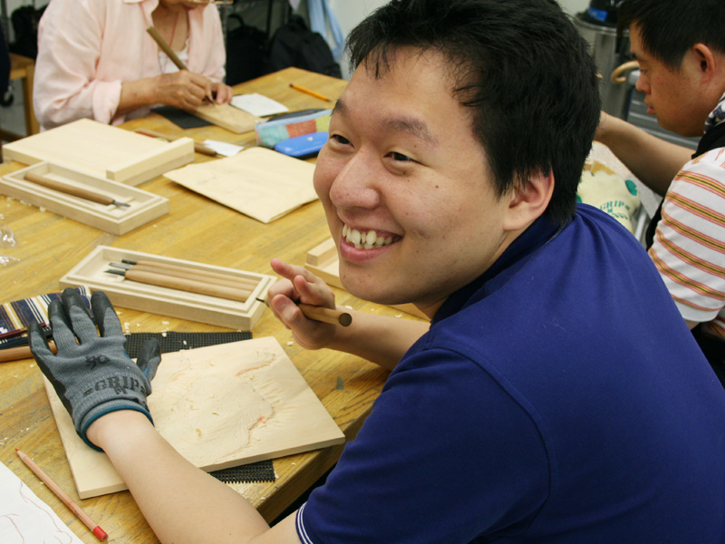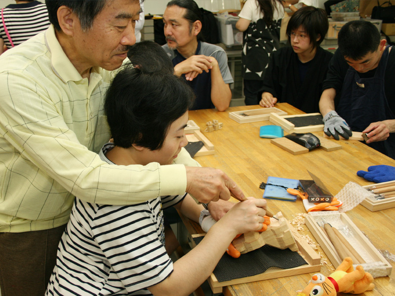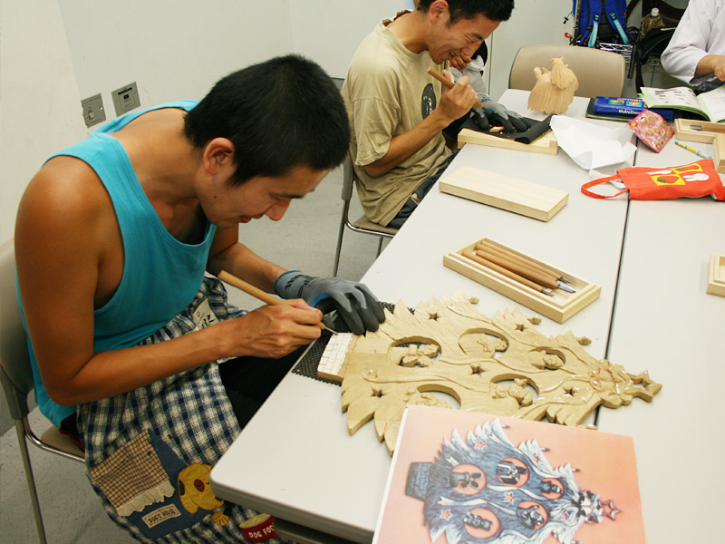 私たちは現在、スペシャルオリンピックス日本・東京にて、知的発達障害のある方たちに文化プログラムの一環として、月に一度木彫りをご指導させていただいております。